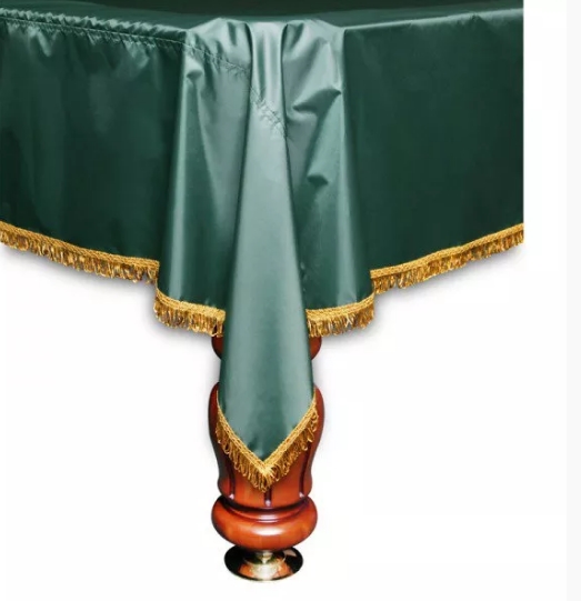 Этот чехол предназначен для бильярдного стола размером в девять футов, он не пропускает через себя влагу, поэтому можно использовать его в помещениях с высокой влажностью. У покрывала зеленый цвет, который идеально подойдет к любому бильярдному помещению, особенно к тем, которые выполнены в классическом стиле. По краю покрывала проходит жёлтая бахрома, которая его украшает. Выполнено покрывало из такого материала, как нейлон. Это износостойкий и прочный материал, который прослужит вам очень долгое время.