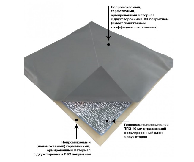 Материал внешнего слоя - ПВХ плотностью 630 г/м2.