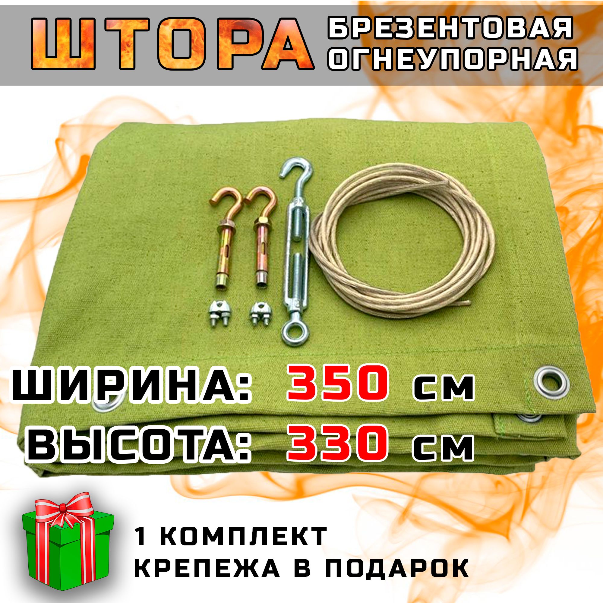 Штора изготовлена из усиленного водоупорного брезента плотностью 420 г/кв.м, соответствует нормам ГОСТ.