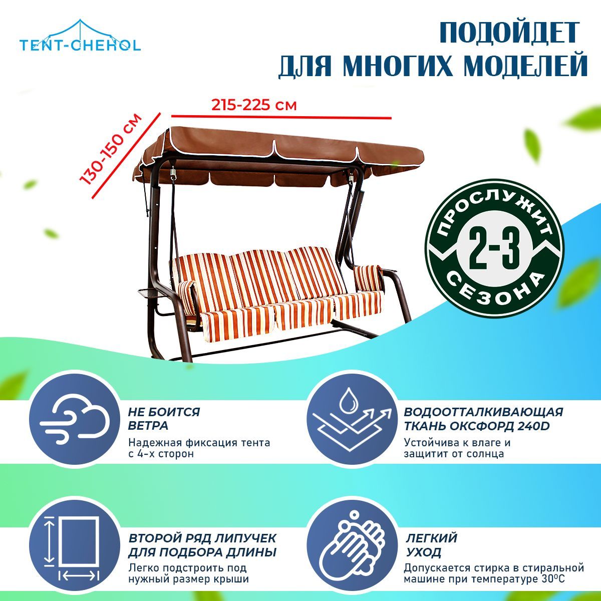 универсальный тент для дачных качелей подойдет ко всем моделям, чья длина сидений не выходит за 225 сантиметров
